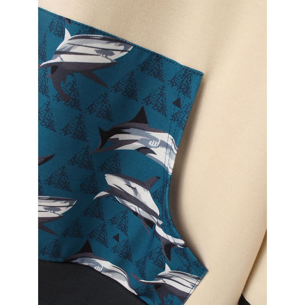 Contrast Patchwork Printed Hoodies